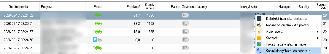 Następnie wybierz pojazd którym porusza się dany pracownik i sprawdź kolumnę identyfikator.
