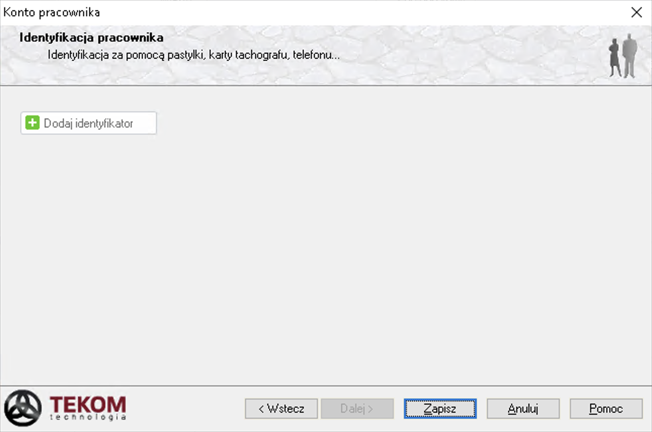 W kolejnym oknie możesz dodać identyfikator jeżeli korzystasz z modułu do identyfikacji pracowników.