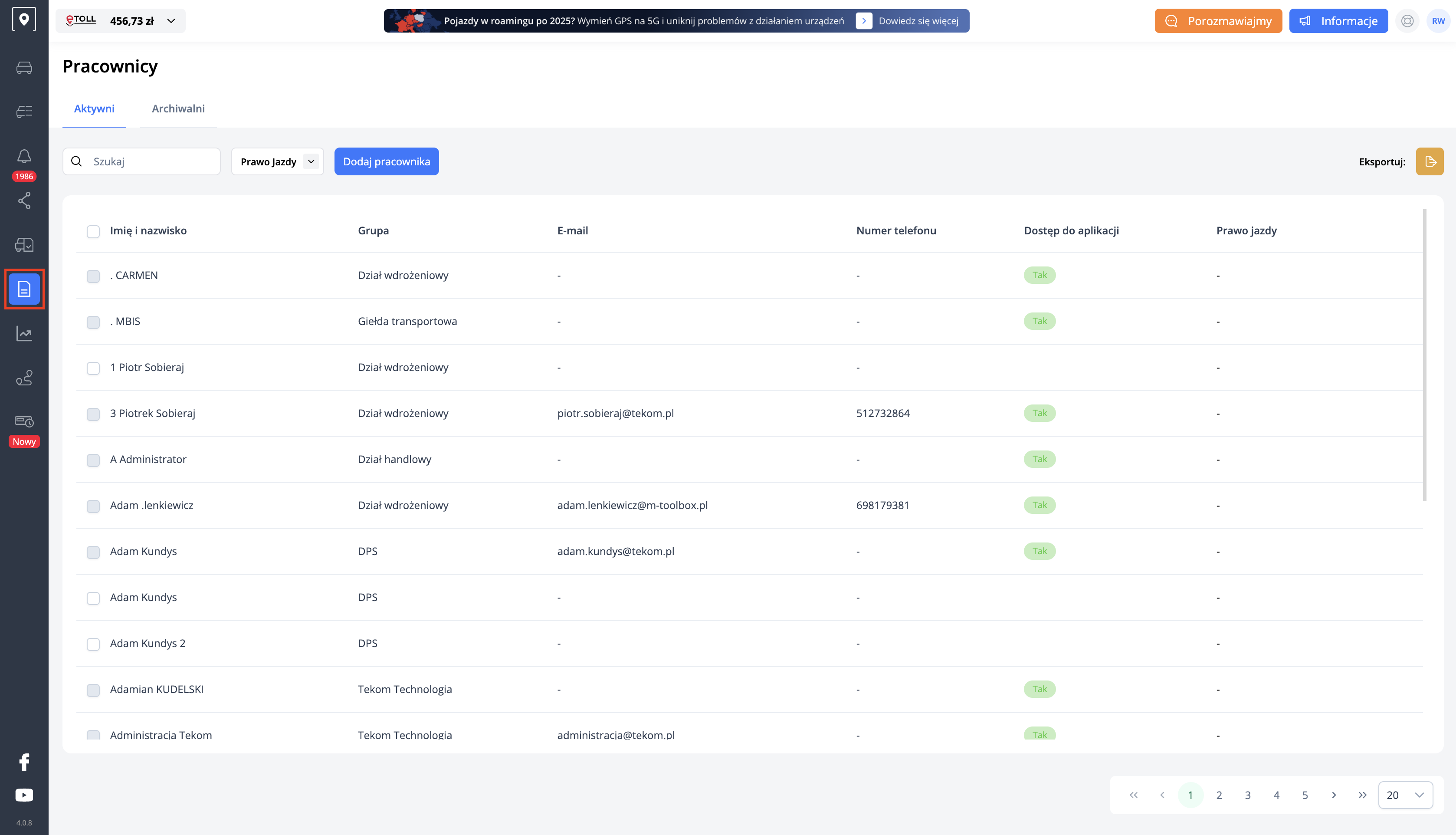 W tym miejscu zobaczysz listę wszystkich istniejących pracowników oraz osoby z dostępem do aplikacji.